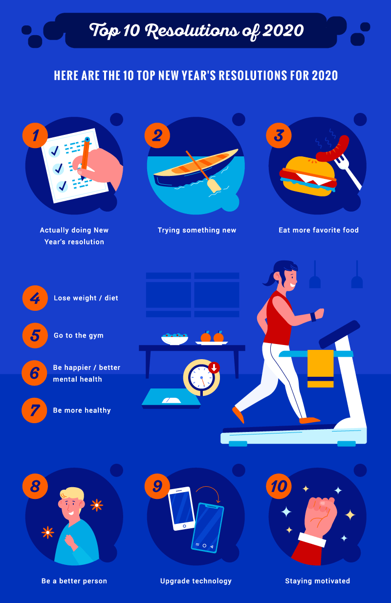 The usual promises around physical health, of course, make an appearance, but more people are working to improve their general wellness. Mental and emotional health is getting a lot more attention than ever before. Resolutions like “be happier,” “eat more favorite foods,” and “be a better person” all feature within the top 10.
