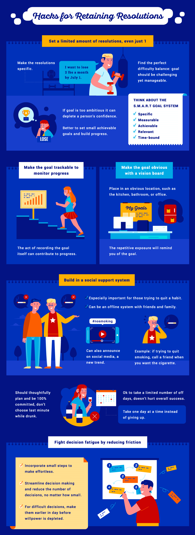 Setting resolutions and making them a permanent part of your life, or even just for a year, is very difficult, with the majority of us failing to accomplish our goals. But by understanding the science of resolutions and human willpower, and applying some of these helpful hacks, we’ll be in a much better place by this time next year.