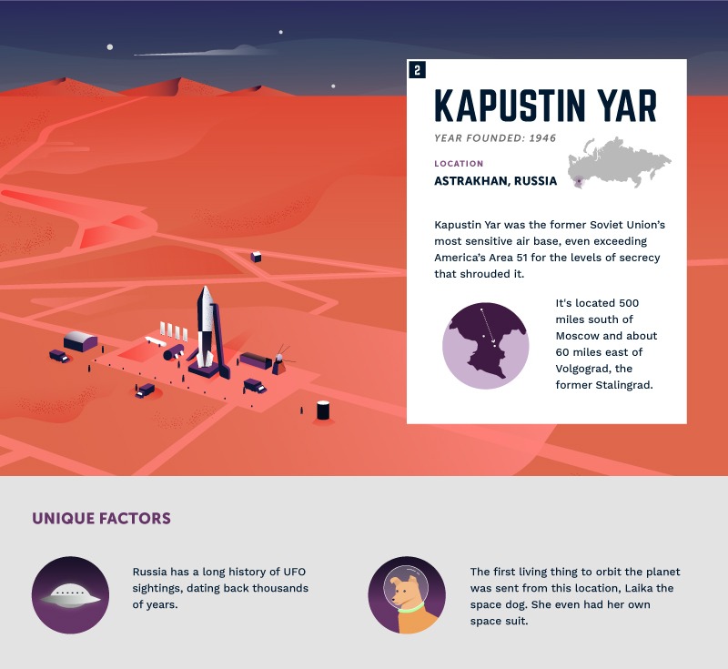 Speaking of aliens, Russia has its own base laden with incredibly spun stories of extraterrestrial intelligence. Kapustin Yar is this top-secret base. The USSR created the site for developing the Soviet space program.